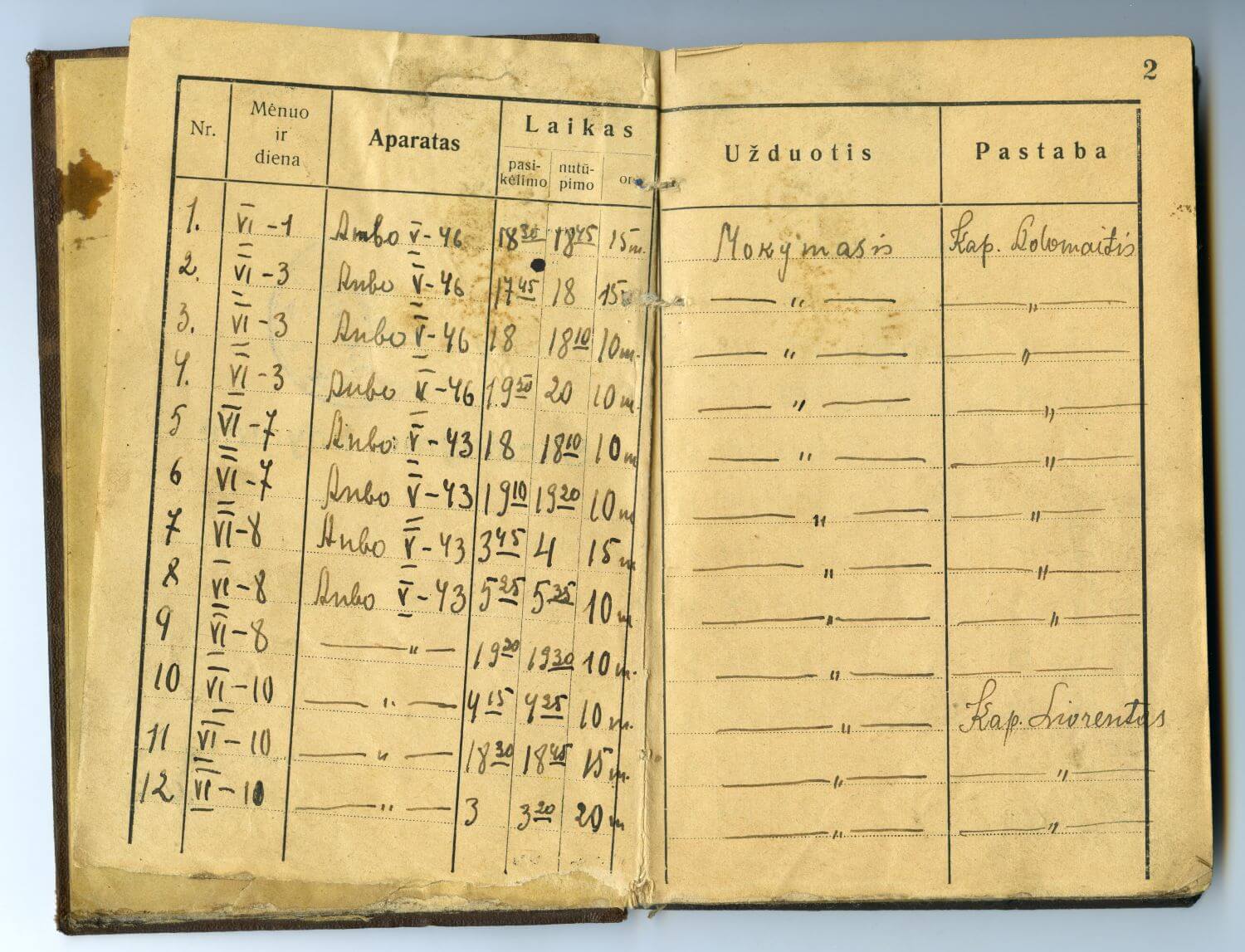 2025 m. minime ANBO šimtmetį. Šiuo lietuvių aviacijos pradininko Antano Gustaičio sukurtu orlaiviu dažnai mokomojoje eskadrilėje skaidydavo būsimasis karo lakūnas, vėliau partizanas Kostas Liuberskis. 1932–1934 m. jis mokėsi Kaune, atkurtoje Karo aviacijos mokykloje, įgijo puskarininkio laipsnį. Mokslas truko dvejus metus. Knygelėje užfiksuotas pratybų ore laikas, aparato tipas, maršrutai, užduotys (aukštutinis pilotažas, foto šaudymas, skraidymas rikiuotėje, oro kova ir kita). Iš viso registruoti 502 skrydžiai, įrašai 1932 m. birželio 1 d. patvirtinti puskarininkių lakūnų klasės vedėjo kpt. [Juozo Jankausko] parašu. Minimos lakūnų rengime dalyvavusių skraidymo instruktorių pavardės: kpt. J. Adomaitis, kpt. Čemarka, kpt. Liorentas, kpt. Kraucevičius, j. lt. Ulčinas, lak. m. l. Pyragius, j. lt. Žukas, Žv. m. l. Mažonas, m. l. Mickus ir kitų.